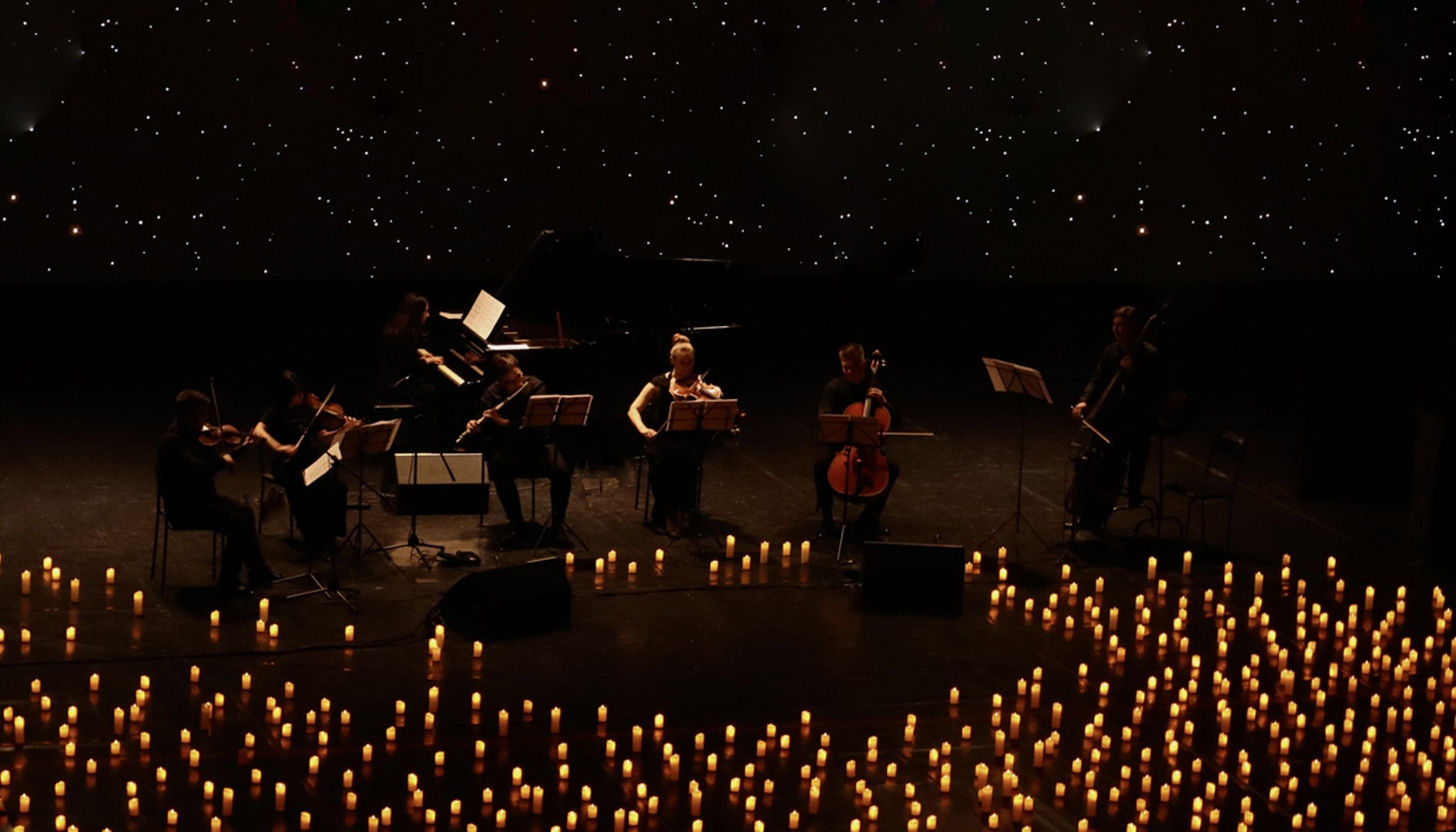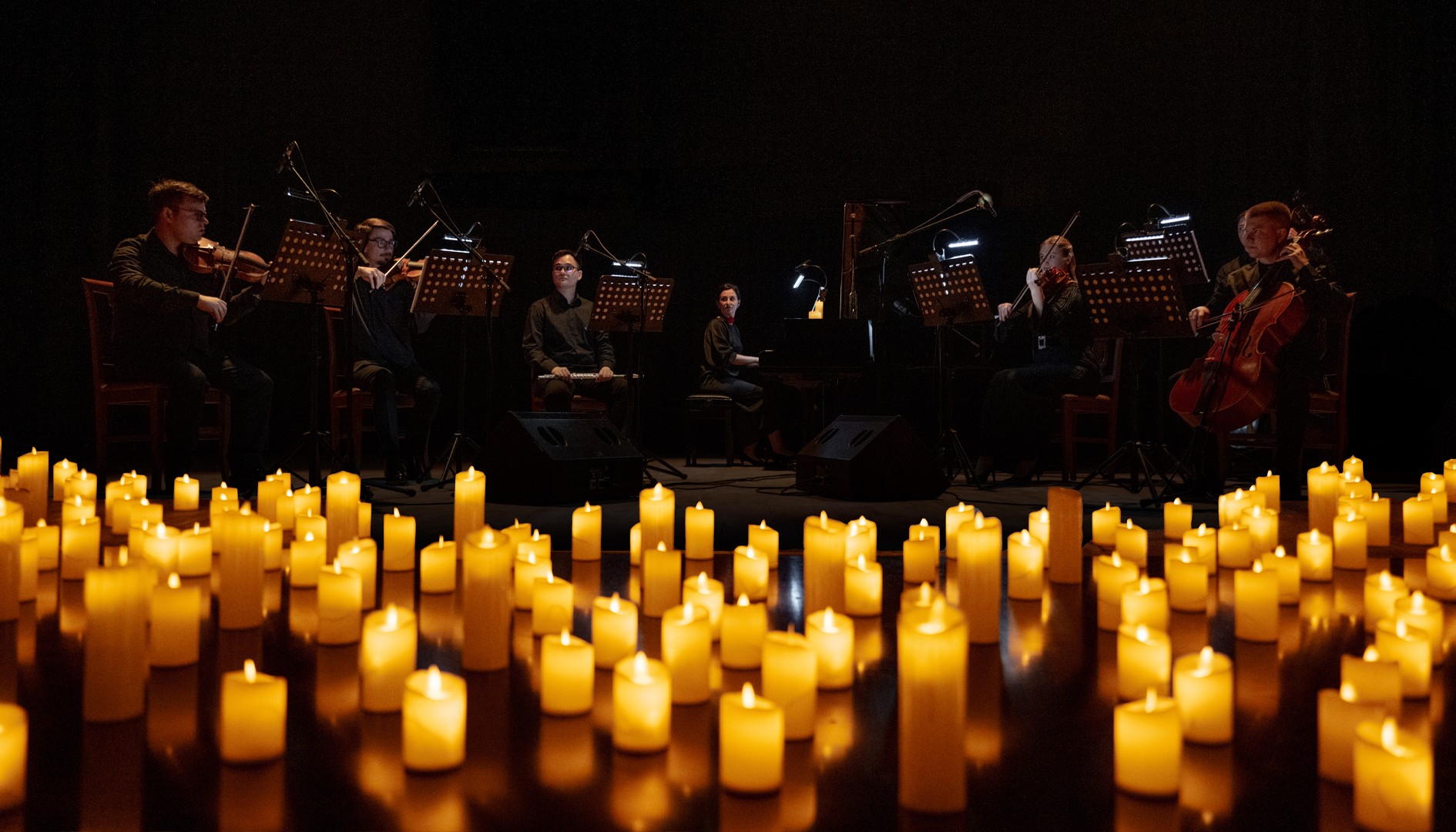1500 - 3000 ₽Тысячи свечей и живой оркестр MUSE! Оркестр Muse – виртуозы, влюбленные в свое дело. Их мастерство заставляет музыку звучать так, что мурашки бегут по коже, а дыхание замирает. Это живой диалог музыкантов со зрителями.